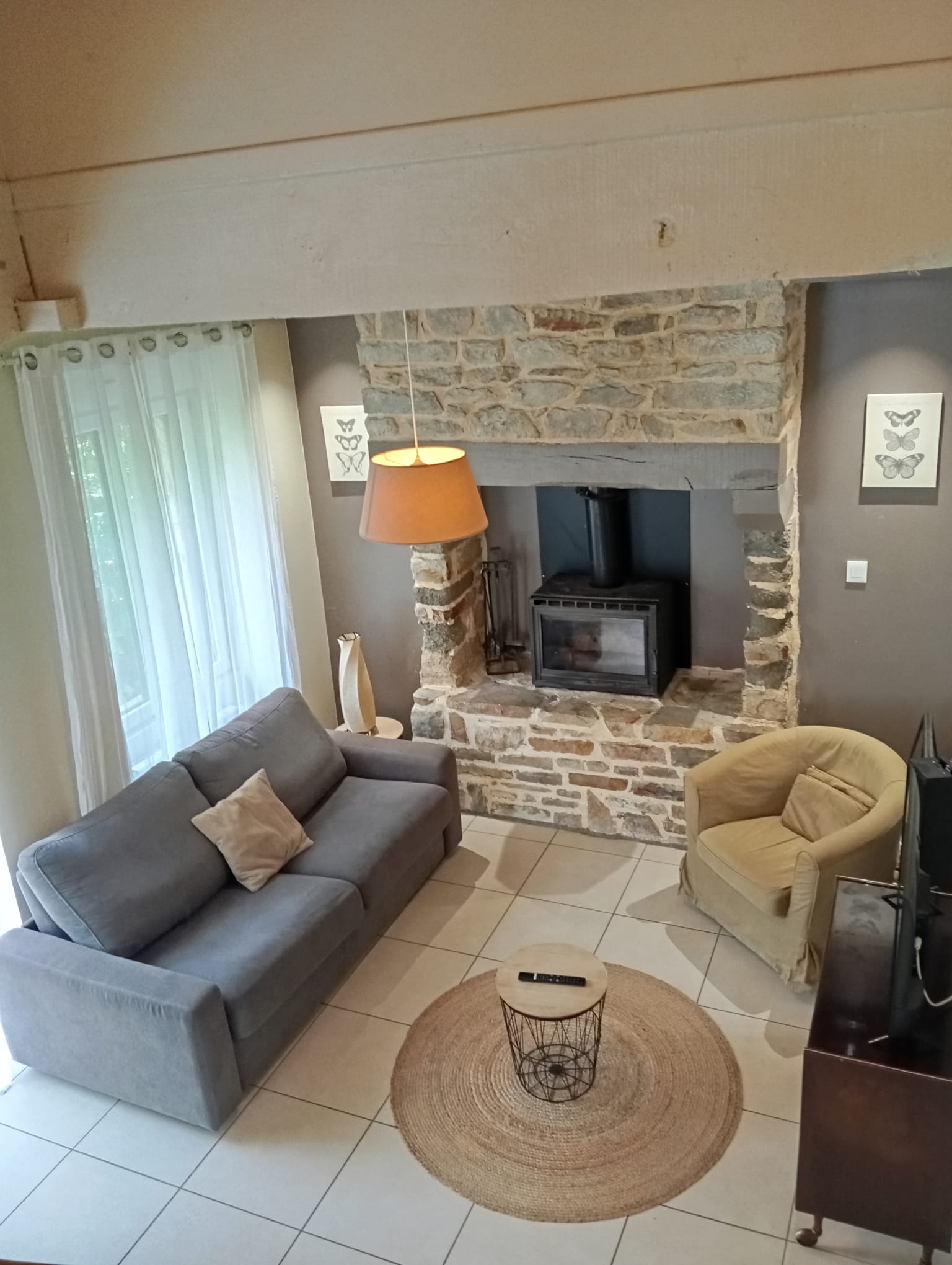 De gros travaux ont été réalisés dans cette grange qui était initialement divisée en deux parties. La première partie était une étable qui accueillait des animaux et la deuxième partie avec la cheminée, le fumoir dans lequel Léa fumait sa viande qu’elle allait vendre ensuite.