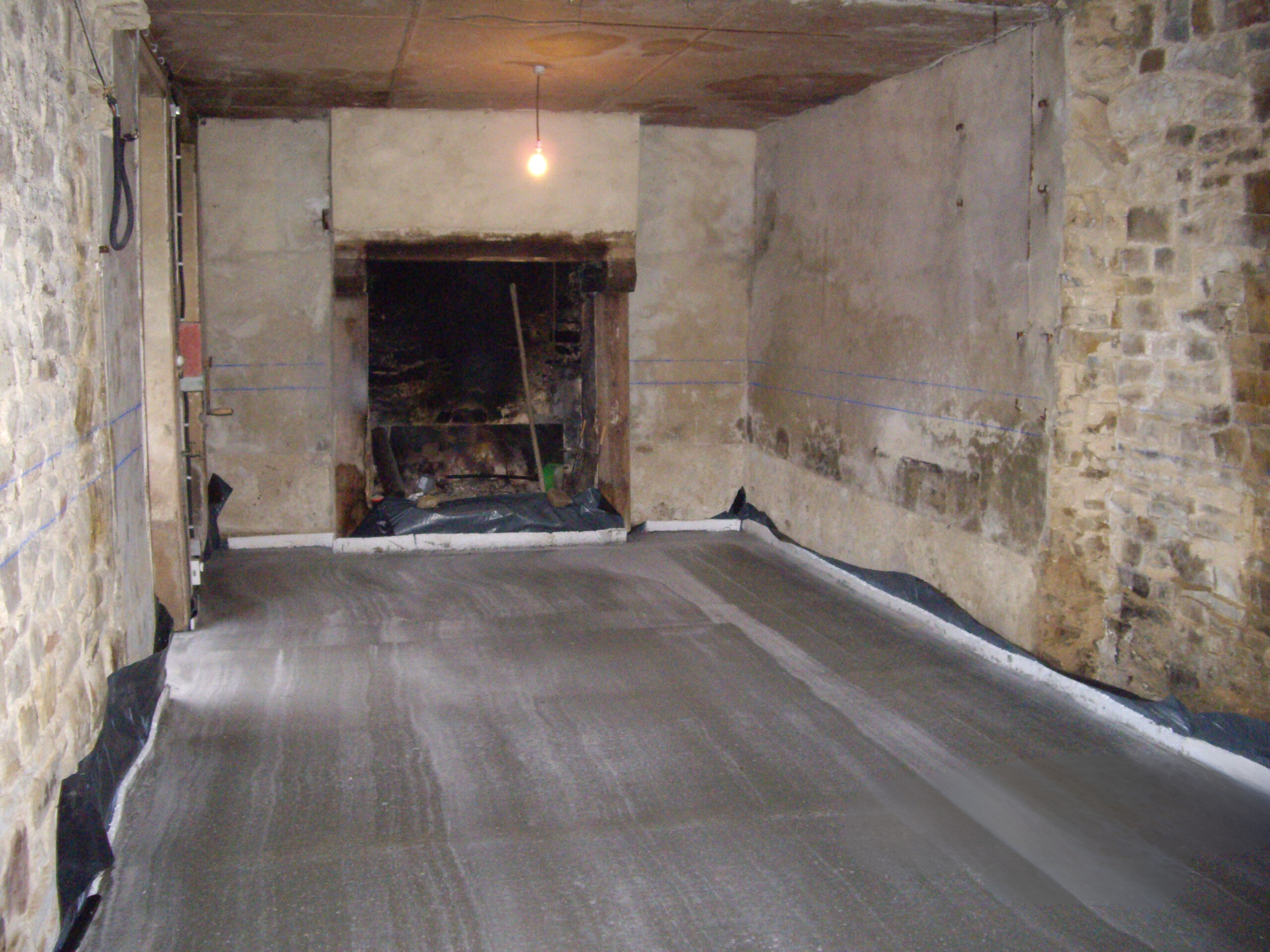 Un mur en pierre de 50 cm d’épaisseur venait séparer cette bâtisse étroite en 2 parties inégales
