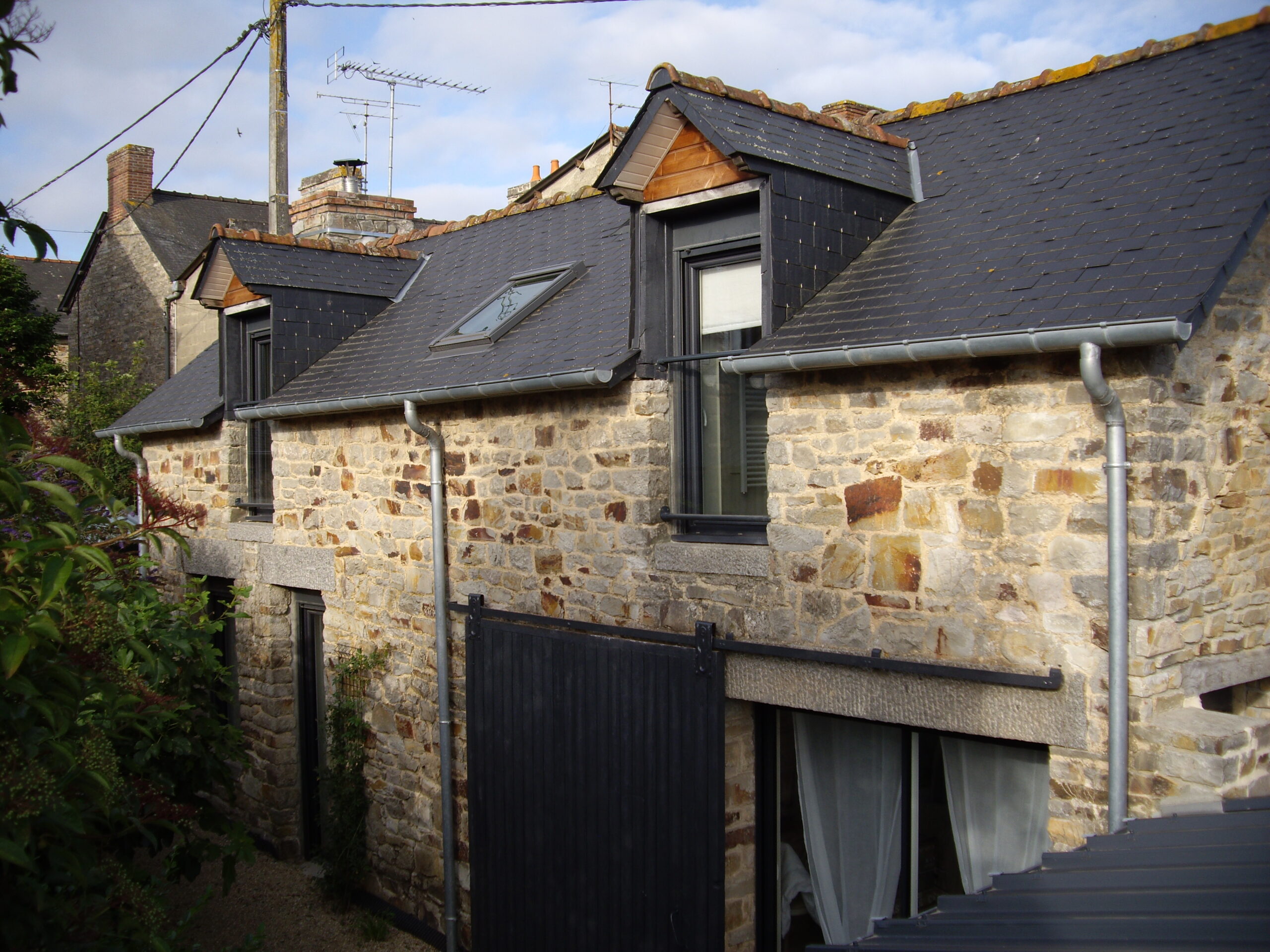 • Le souhait était de conserver l’identité de cette bâtisse, conserver l’écriture de l’existant. L’ensemble des ouvertures a donc été conservé. La toiture a entièrement été refaite ainsi que des reprises en gros œuvre pour pouvoir repartir sur une base saine.